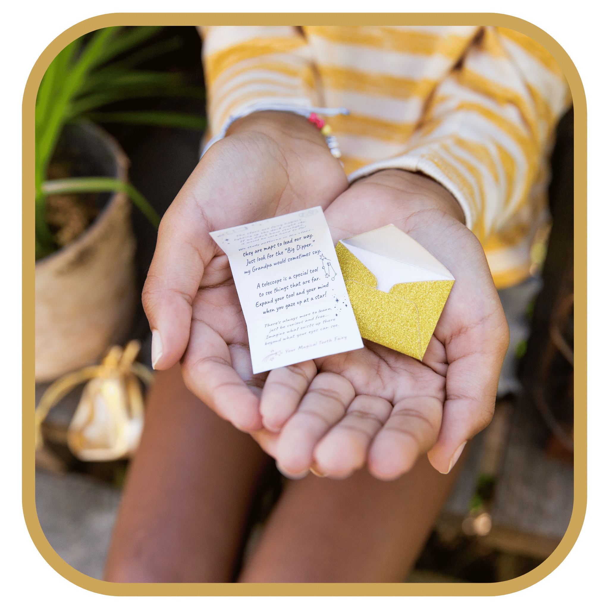 Every petal of this preserved red rose carries a whisper of love from your Tooth Fairy's heart. Nestled beneath a delicate glass cloche, this miniature treasure captures something rare—a moment of pure affection frozen in time. The enchanted rose never wilts, just like the bond between you and your little one. With petals kissed by fairy magic, this keepsake becomes a forever reminder that love is the truest magic of all. Pre-packed in our signature gold gift bag with a heartfelt fairy letter in a sparkling envelope, it's ready to deliver under the pillow. A perfect keepsake from "Your Magical Tooth Fairy" to say I love you in the most memorable way.